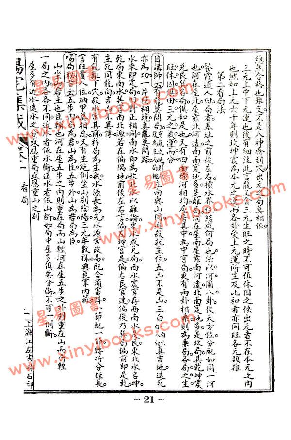 余束髮時,從事舉業外,好窺陰陽,辯方位,後游歷京省郡縣,凡遇巨川、大麓、古墓、名第,莫不留心考核,又嘗與江右吉在丁君、弼臣管君、淛水簡青陳君、禹平沈君、同郡雙柑陸君、濟寰曹君、季先陸君、體仁王君,互相集證,恍然知此道中實有中正之理,與隨時變化之氣與數,錯綜參伍,微妙淵深,悉與儒者之道符合,非可淺嘗臆斷者也。用是細推二五之精蘊,深探河洛之根源,廣採前言,鉤元提要,去偽存真,編次成帙,陰宅四卷,名曰《集要》;陽宅八卷,名曰《集成》,戊辰歲已將《集要》鐫刻問世。辛未仲秋,同道諸君暨及門諸子,見余《集成》,咸曰:「從來地理諸書,有專論陰地,而無關于陽宅;有偏重陰地,而以陽宅為緒餘者,未有薈萃諸家論說,從源迄委,綱舉目張, 無義不搜,無法不備,而又能指歸畫一,要于至當,若茲集者, 洵與《集要》稱《合璧》是宜,亟付梓以公同好。」
