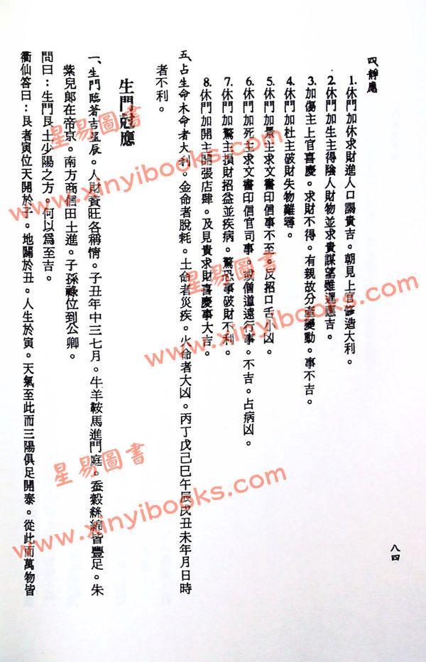 以及門、星、宮、神、六丁、六甲、十干、奇儀、九遁變法、三詐。五假。入墓等項。逐條予以分析歸納作有系統之詮註。縷述吉凶休咎之所以然。末附符咒斗罡方法。備作參考。歷時三年有齊。始告殺青。庶謁綿薄。以響有志斯學之士。藉以登堂入室。提高探討之興趣。俾大易哲學得以延續推廣。固有文化由此發揚光大。斯又心香以祝者也。惟以學海無涯。蠡測有限。尚祈海內外博雅君子進而教之是幸。