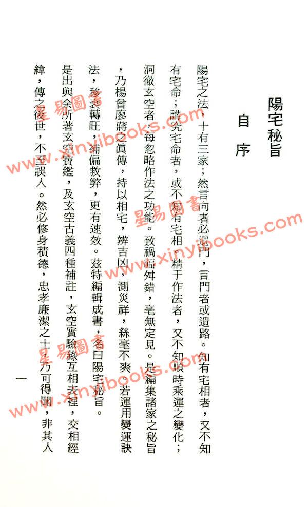 陽宅之法,十有三家;然言自者必遺門,言門者或遺路。知有宅相者,又不知有宅命;講究宅命者,或不知有宅相。精于作法者,又不知順時乘運之變化;洞徹玄空者,每忽略作法之功能。致禍福舛錯,毫無定見。是編集諸家之秘旨,乃楊曾廖之真傳,持以相宅,辨吉凶,測災祥,絲毫不爽。若運用變運訣法,移衰轉旺,補偏救弊,更有速效。茲特編輯成書,名曰陽宅秘旨。