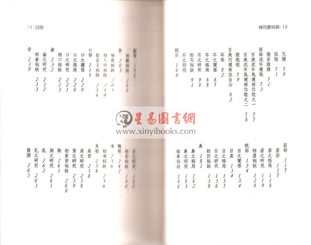作者將手面相.身相.足相.痣相.毛髮.骨肉.氣色作全盤的講解,並有永樂百問.古人觀相彙編.古今識鑑等專章,內容鉅細靡遺,是相學研究者案頭必備的百科全書.