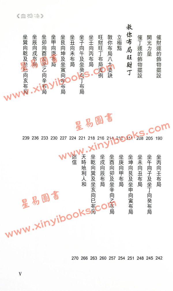 -每個坐向,逐一示範布局,圖文並茂,兼催財丁。種 種風水玄機,皆可在本書之中找到答案。