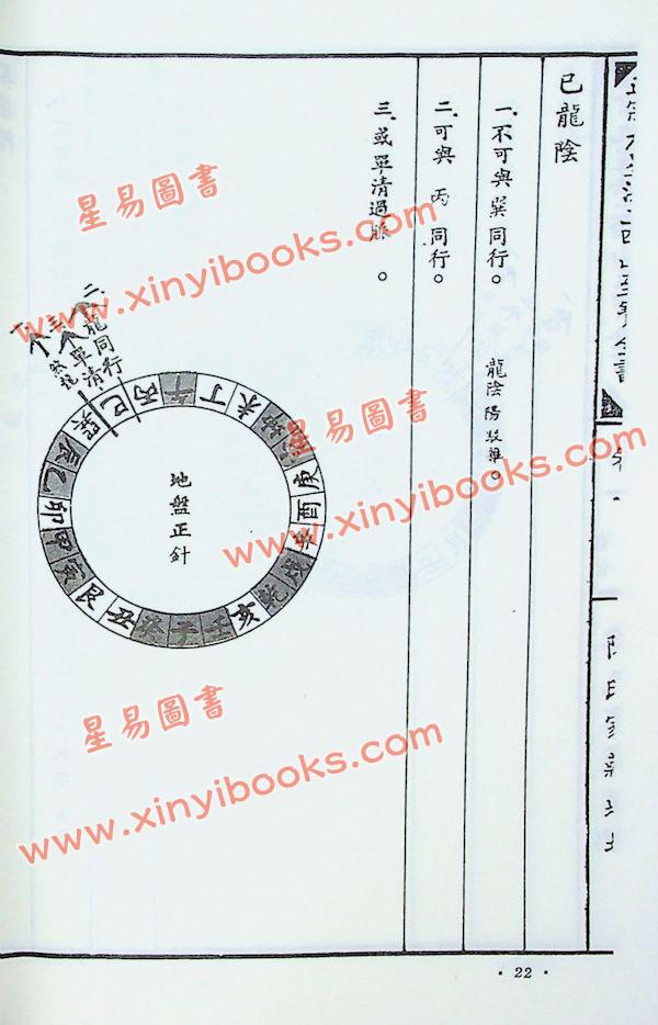 本書內容全部以易學八卦配九星而主,將廿四山之龍法,立向法,水法,砂法及龍配向,向配法等秘訣,一一說明並配合圖解,使閱者一目瞭然,易於學習,文少圖多是為了使閱者能利用羅盤使用之方法,圖中上有註明地盤正針,人盤中針,天盤縫針等字句,此說明圖中格龍,立向應用地盤正針格定之。納水應用天盤縫針格納之。消砂應用人盤中針撥消之。