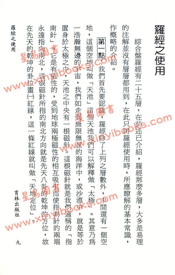 「罗经」:是堪舆学不可缺少的工具、国内外堪舆术里,罗盘大致分为二种,一种是蒋大鸿先贤创作之「三元盘」,而后沈氏玄空作者,「沈竹礽」先贤改良为、三元、三合综合盘,也是现代坊间使用者最广,为了让读者更加了解罗盘之使用,笔者将罗经上所列二十五层,每层分解说明更以绘图详解,无论玄空大卦、沈氏玄空,龙门八局、挨星诀、六十四小卦等奥妙秘诀,都刻入罗盘内,使每位使用本罗盘前辈,均能深透的了解每层之意义与精华,层层精通,层层运用自如,笔者制作的罗盘,最大优点在于字体放大,无论各派都适合使用,简而明之,不必死背峦头、理气,是专业地理师最实用的罗盘,更不怕记忆力差,操作简单顺手,本书以深入浅出之方式解释各家理气精要,减少后学者的障碍。以利五术发扬光大,今将国内外各派秘诀公开于书中与读者共享。乃先贤之德,后辈之福。