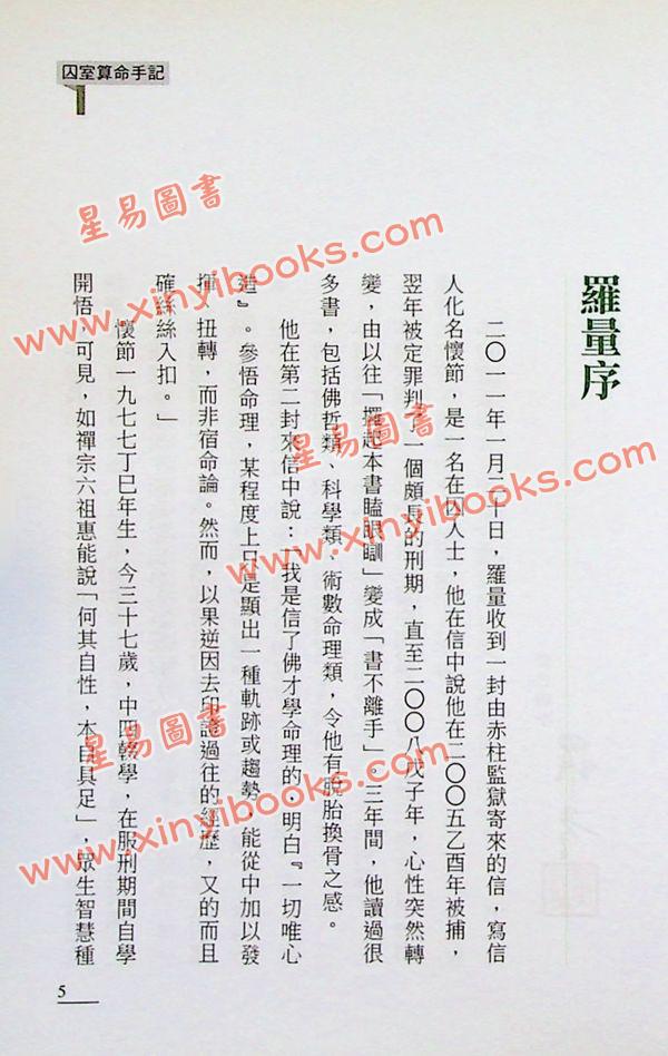 本書是作者在獄中為囚友算命的結集,主人翁之中,有幫會話事人、假卡集團首腦、強姦犯、殺人犯、終身犯等。作者為囚友算出前塵往事,算出因緣業力,算出命運吉凶,算出未來何去何從。囚室算命,阻隔重重,年紀輕輕,功力非凡。