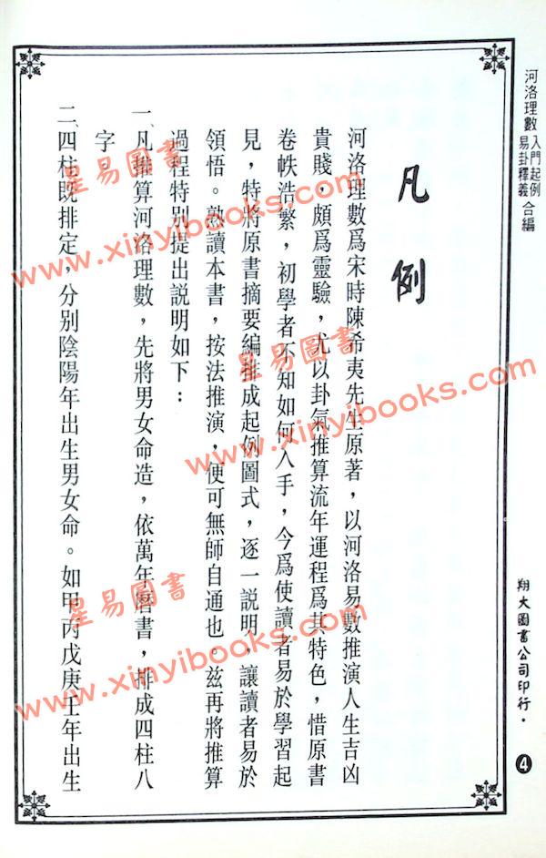 (河洛理數入門起例)是紀大奎撰,以最淺顯之易卦以圖表方式註解詳盡引述,即可入門而將河洛理數之推命連為運用。