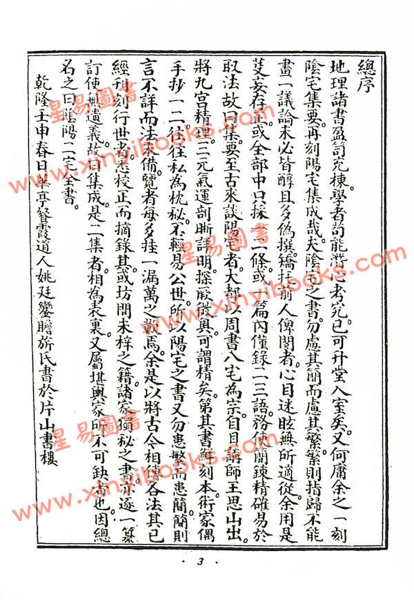 言雖係乎術家。而與古聖人明生成。以協天之旨。不相悖謬。此豈君子之所得。而廢之者哉。此吾友姚子所以既為陰宅集要。為之納其元。而提其要。茲復為陽宅集成之書也。姚子以為難經之旨。後世演說不啻數百家。而陽宅之書最寡。故其於陰宅也略。
