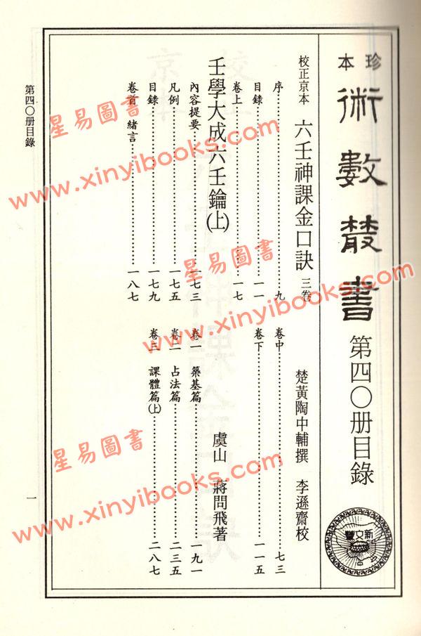 【校正京本六壬神課金口訣大全】 作者:楚 黃陶中輔撰 上元李遜齋校