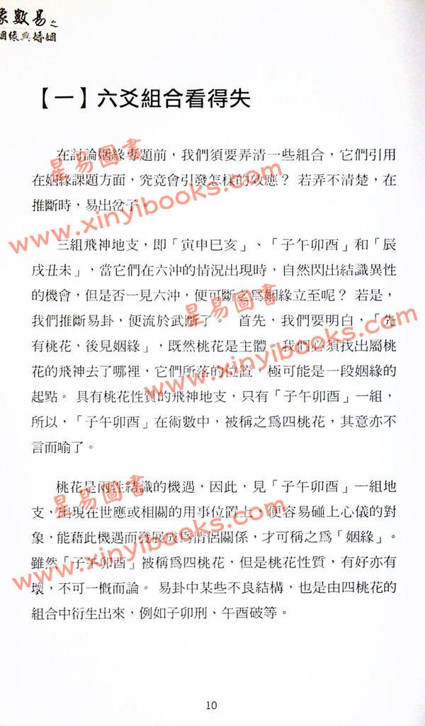 占姻緣,以「子午卯酉」四桃花為重點,所謂「桃花易見,真愛難求」。如何決定桃花之真偽?怎去界定是良緣、孽緣,還是霧水情緣?書中會逐一披露。