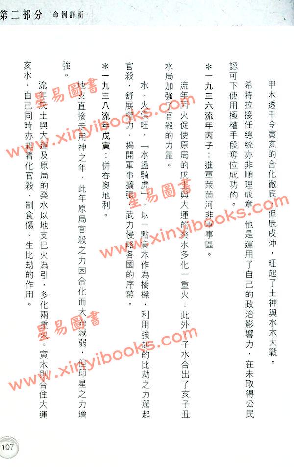 第二部分是命例分析,亦是本书最珍贵的章节,笔者透过不同范畴的实例,展示如身强弱的变化与影响、从格的分析要点、合化的关键概念等多种实战技巧,而最特别之处是,笔者在多个命例中详尽演绎坊间少有触及的流年推算技法,将八字原局、大运、流年三方的交迭情况多角度地具体呈现。
