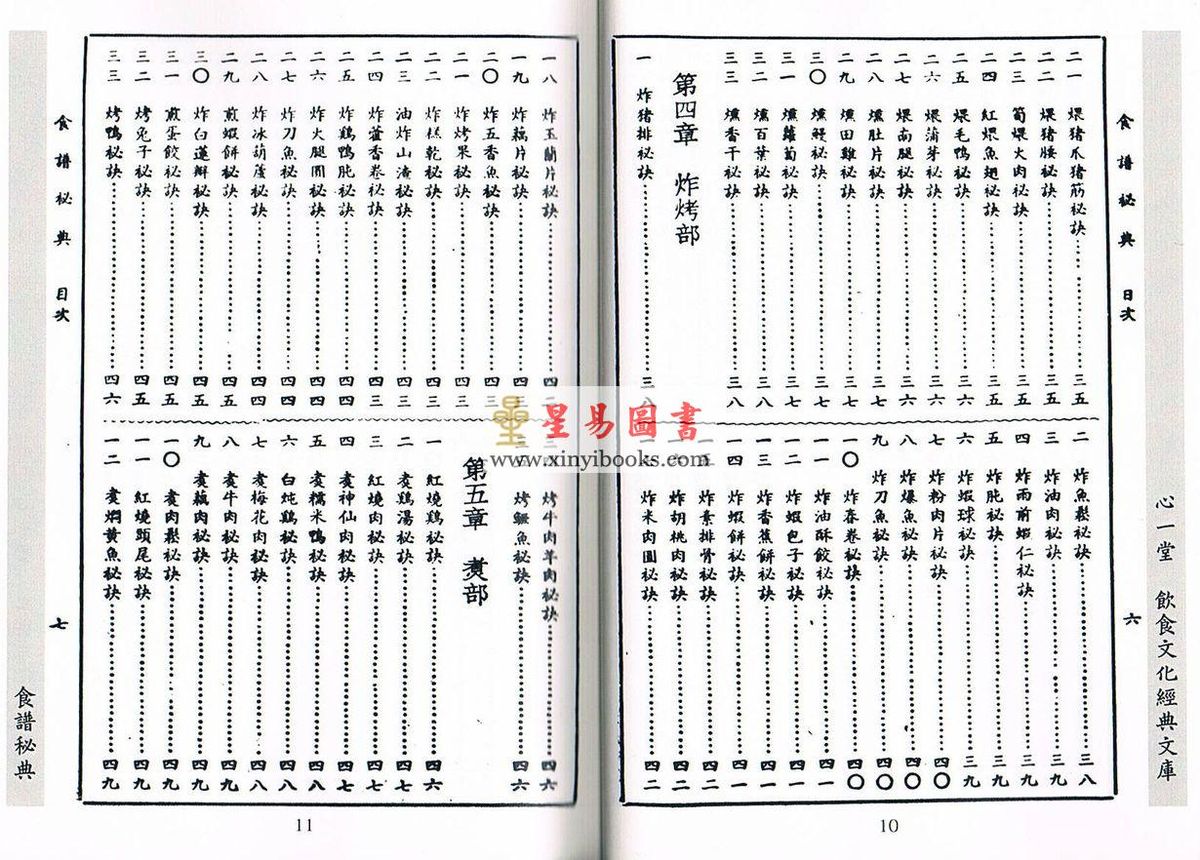 正文以烹調法分類,炒部、蒸部、燻煨部、炸烤部、煮部、醬部、糟部、糖部、酒部、醃部、西菜部等十一章。讀者可以集中改進個別烹調法的技巧。