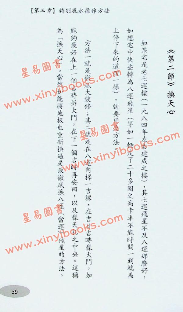 本書盡量不用艱澀難明的風水術語,使讀者容易明白一些家居趨吉避凶新知,以及為坊間書本所提及的操作方法,如「倒騎龍大法」、「門線」、 「轉變坐向的法則及方法」及「換天心」等。讀者可根據家中的坐向度數及外巒頭來決定坐向,再找出相關的局;無論是商是宅,也可以自己佈風水局,或至少檢視一下自己單位的吉凶。