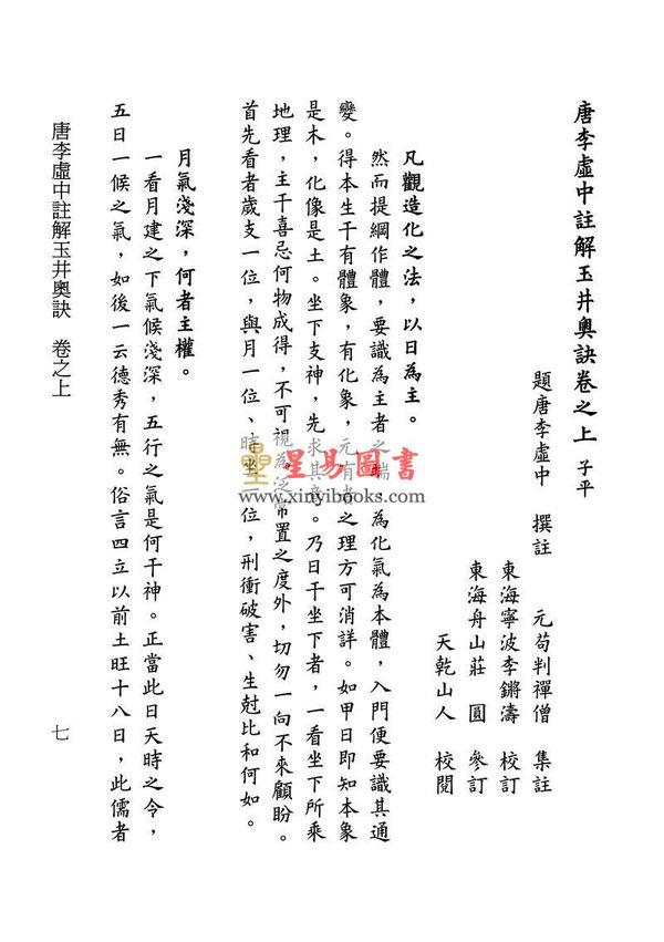 今合刊萬曆六年《三命通會》、萬曆十年《星學綱目正傳》二書收錄之《玉井奧訣》,名為《兩家註解玉井奧訣》。