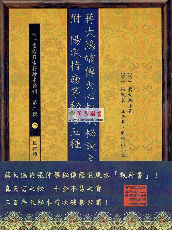 | 繁體資料 | 蔣大鴻/楊卧雲/汪雲吾/劉樂山:蔣大鴻嫡傳天心相宅秘訣全圖附陽宅指南等秘書五種 |