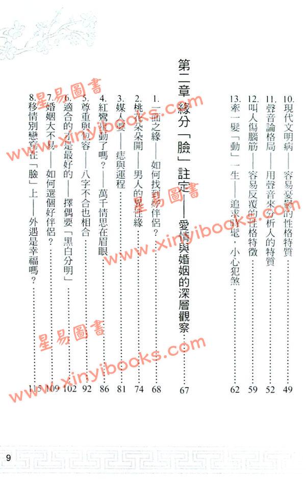最後,希望通過這本書,提供給大家一個淺顯易學的方式,進而對周遭的人士有多一層的理解,減少人與人之間的摩擦。同時也希望本人對於面相的體悟,能讓愛好者受用無窮。