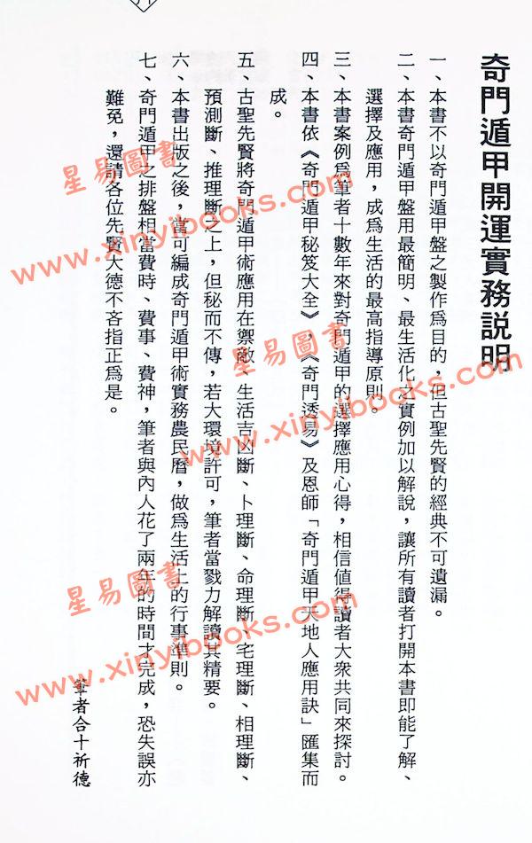 今逢余胜唐先生大作││《奇门遁甲开运实务》一书出版之际,兹应其所请,聊序感言。一般五术之书,经常有某些「师心自用」之着,或「天机不可泄漏」之苦衷,所以「留一手」是常有的事,也因之读者很难「无师自通」,从中获得利益,而无法广为流通。
