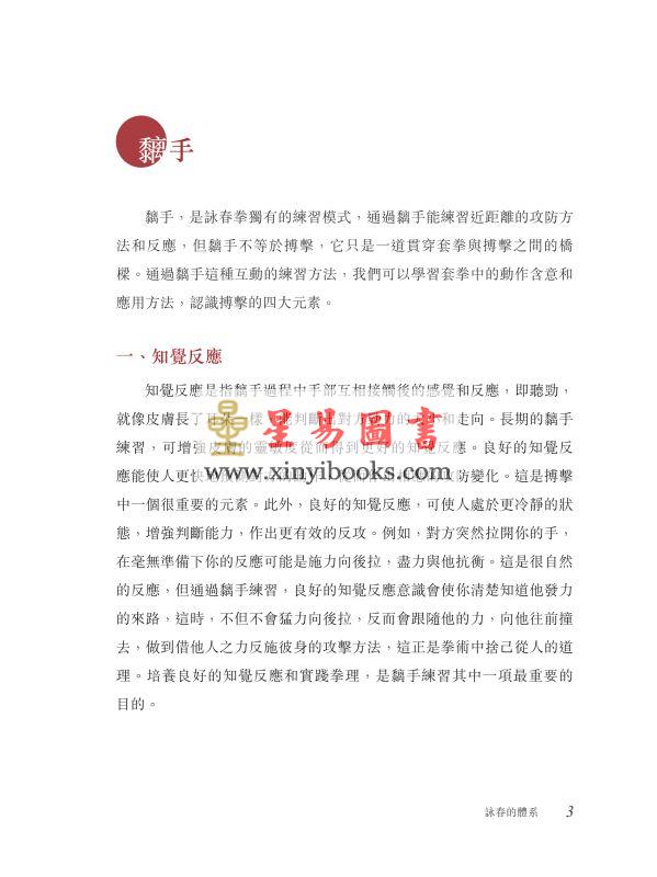 本書由最基本的練習開始,循序漸進,由淺入深地去窺探詠春黐手的練習過程,使未曾接觸過詠春拳的讀者能易於明白和理解,對學習中的愛好者則能加深他們的體會和心得。