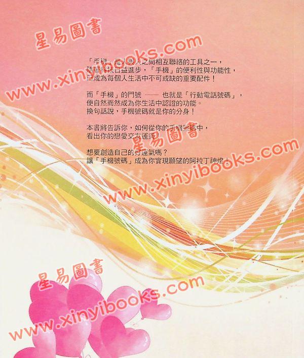 其實,每個人身邊都至少有一個阿拉丁神燈了,那就是和你最親密的朋友──手機號碼!在手機門號10個神祕數字的兩兩排列後,所顯示出來的任何訊號,正是你每週機運好壞的開始或結束。