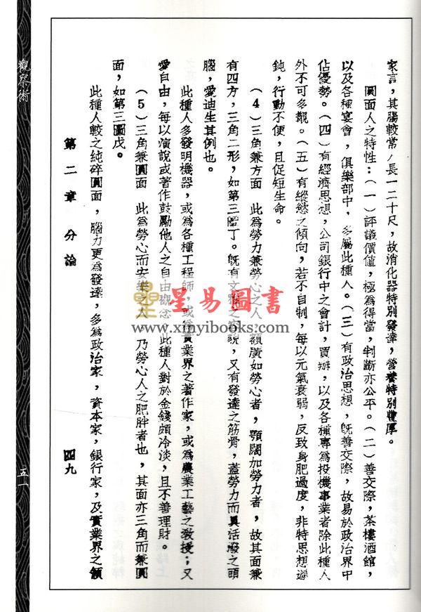 讀者再參民初及香港、台灣早期相術著作如: 《冰鑑集》、《中西相人探原》、《相微》、《簡易相法秘傳》、《鑑人術》、《新相人學講義》、《手相學淺說》、《無師自通相命大全》、《現代人相百面觀》、《相人新法》、《成敗論手相》、《香港新相術二種》、《新編手相學大全》、《人相與相人》等,可知中國傳統相術,及民初以來融合傳統相術與傳統西洋相術、現代西洋新相術(性格分折)、骨相學、東洋相術的新相術體系的異同。