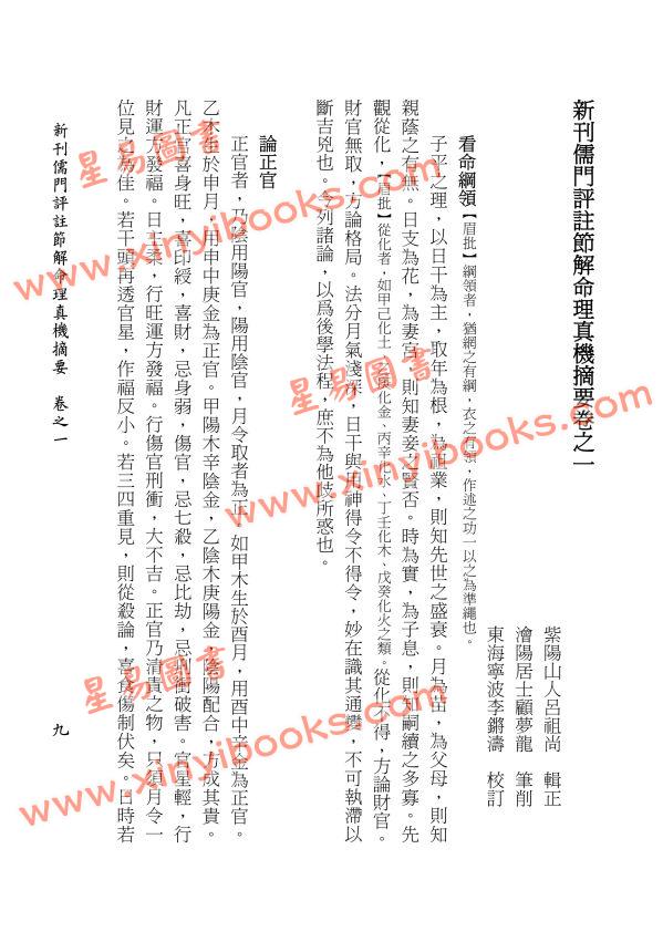 繁體資料 [明]呂祖尚:儒門評註節解命理真機摘要