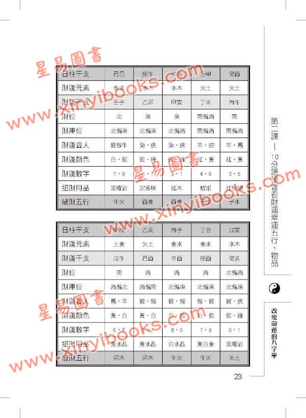 快速學會查表看出財運的幸運五行、顏色、方位、用品……等等。