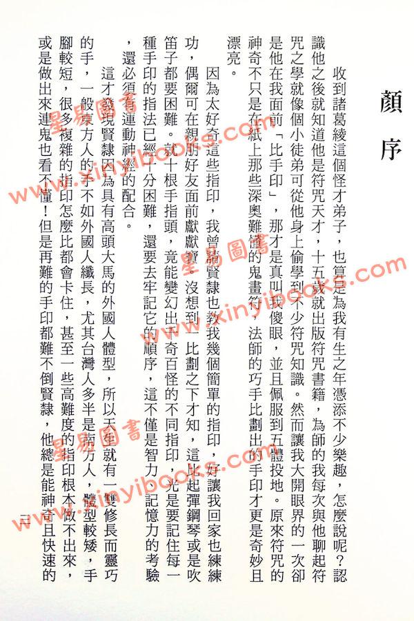 然而,符咒之術高莫測,有心學習者仍大有人在,有緣者不正如您已在翻閱本書!符咒的門派眾多,使用的指印多少有些差異,甚至有獨門的用法口訣,本書介紹的是以本門茅山為主的心印,書中穿插一些特殊門派用的指印,指印可配合筆者所著其老符書一同使用,加強符法效力,再力以反覆練習必能有所成。